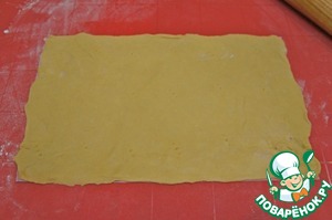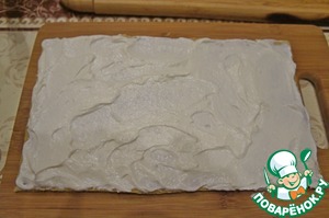 Утром достать тесто из холодильника, разделить на 8 частей.