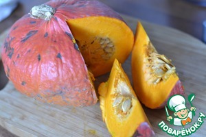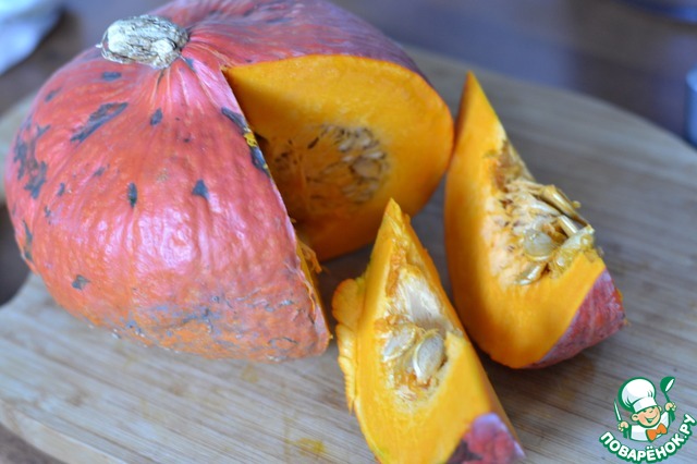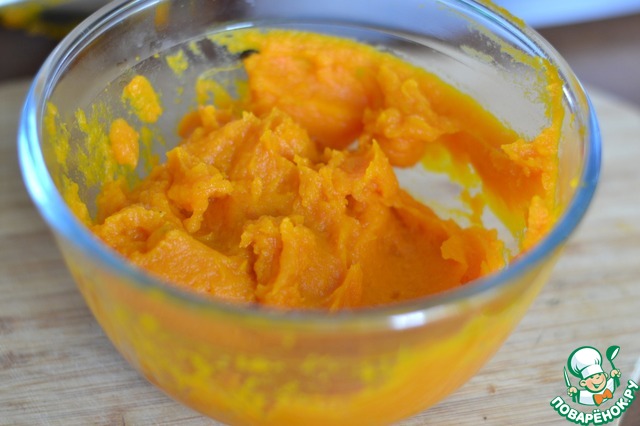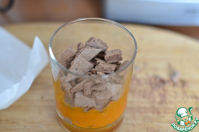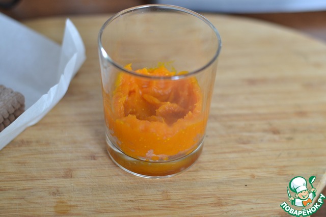 На дно стакана выкладываем 2 столовые ложки тыквенного крема. -