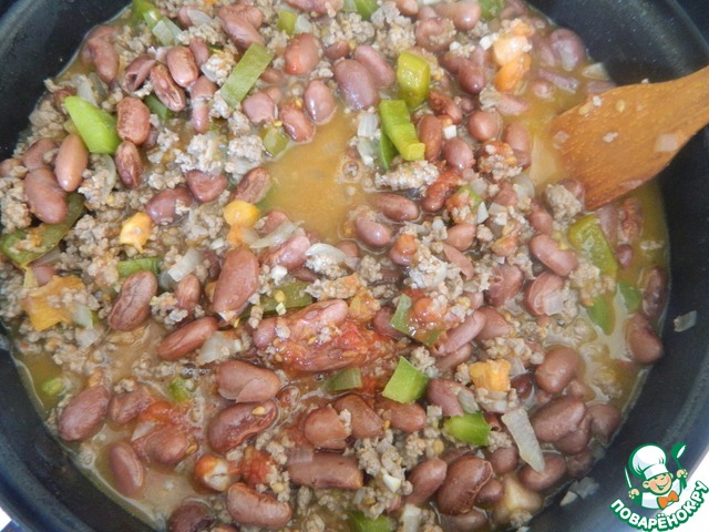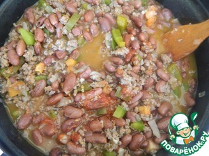 - Фасоль (В оригинале рецепта используется консервированная фасоль. Я использовала сырую. Предварительно вымочила ее около 5 часов в оде и отварила до полуготовности.) — 1 стак.
