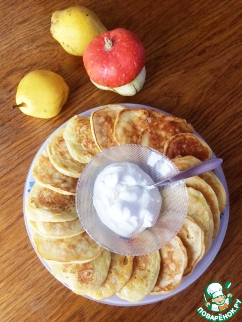 Рецепт «Тыквенные оладьи с яблоком и грушей»:
