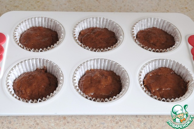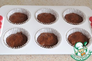 Выложить тесто в формочки для капкейков. Выпекать до готовности при 180С.