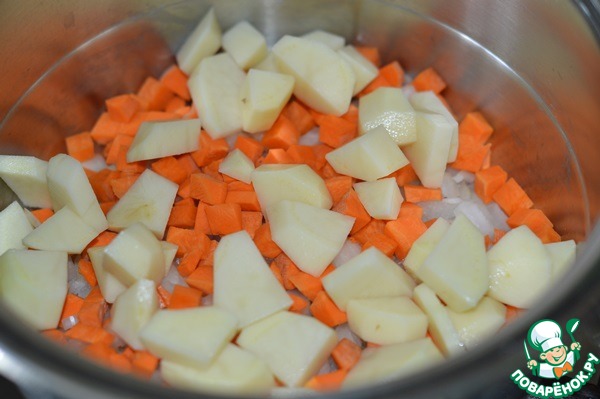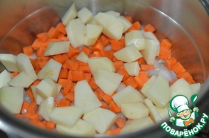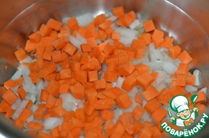 Овощи почистить, нарезать кубиком. В кастрюлю Zepter выложить лук, морковь.