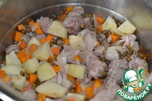 Кастрюлю накрыть крышкой, поставить на средний огонь. Когда стрелка термоконтроллера дойдет до середины зеленого поля, уменьшить огонь до минимума, готовить 20 минут.
