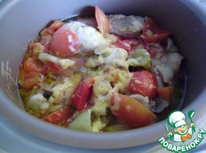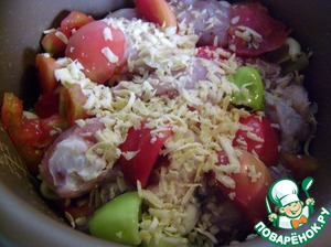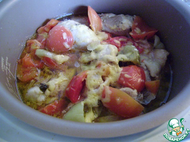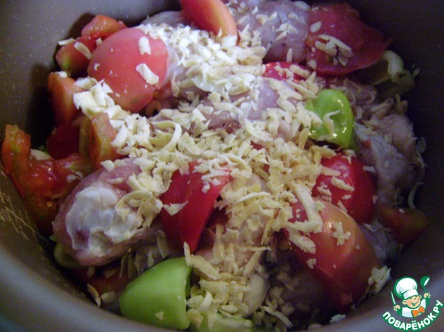 Выкладываем в мультиварку. Сверху трем сыр. И включаем режим "тушение" на 1 час.