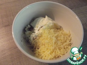 Сыр натереть и смешать со сметаной. Слегка посолить поперчить.