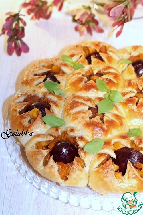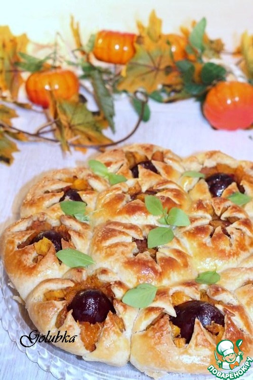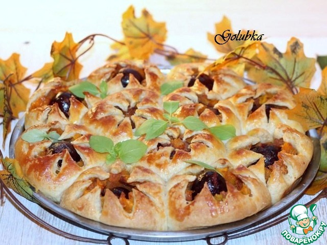 Рецепт «Пирог со сливой и карамельной тыквой»: