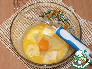 Добавляем мягкое сливочное масло, яйцо и цедру 0,5 лимона, взбиваем смесь венчиком.