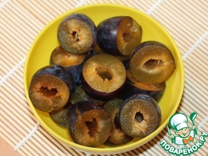 7. Сливу разрезать пополам и вынуть косточку.
