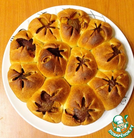 Пирог из ароматных булочек в форме "лотоса", и вкусная начинка со вкусом карамели и лимона. Для этого пирога не надо готовить опару. Пока занимаемся формовкой и укладываем заготовки булочек, пирог сам растет под полотенцем.