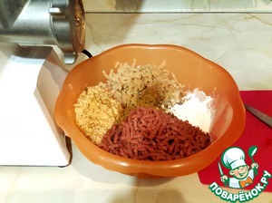 Мякоть мяса и рыбы пропустить через мясорубку, посолить, поперчить, добавить воду, замоченный хлеб ( я его тоже пропустила через мясорубку) маргарин, крахмал, специи, все хорошо вымесить.