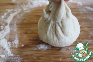 Переворачиваем и аккуратно, слегка раскатываем в лепешку.
