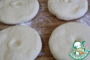 Делим одну часть теста на 6 кусков, раскатываем каждый в круг.