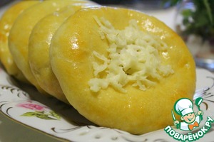 Достаем, выкладываем на каждую лепешку по ст л сулугуни и еще на 7-10 минут в духовку, у меня был не сыр а сплошное разочарование - он вообще не расплавился ( ( (