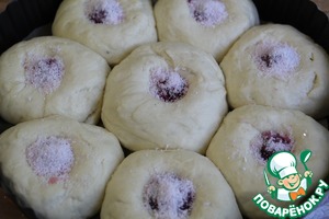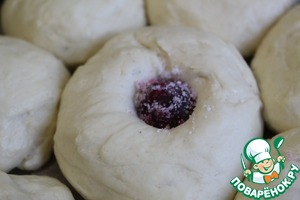 В булочках делаем углубление, туда насыпаем немного сахара с крахмалом.