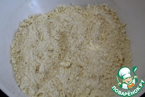 Муку, сахар и сливочное масло перетираем в крошку.