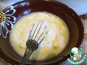 Делаем заливку для запеканочки. взбиваем венчиком яйца, молоко, сметану, майонез. добавляем немного соли