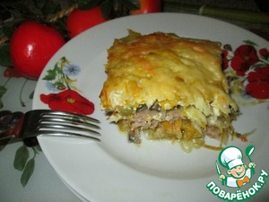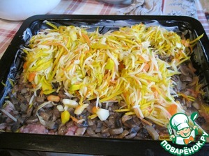 Божественная запеканочка из свежих овощей, грибочков и мясного фарша. Колдовали всей семьей, поэтому получилось весело, красочно и очень вкусно! Аналогов, конечно, множество, но в такой интерпретации вроде не нашла. Попробуйте и проведите незабываемый семейный вечер за вкусным ужином. Уюта и тепла в ваш дом!