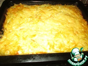 Сверху посыпаем тёртым сыром, должна получится сырная шубка