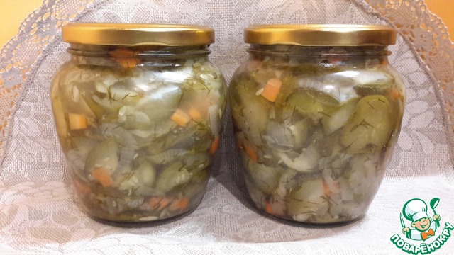 Через сутки объём уменьшился на четверть или, даже, треть - овощи пустили сок.