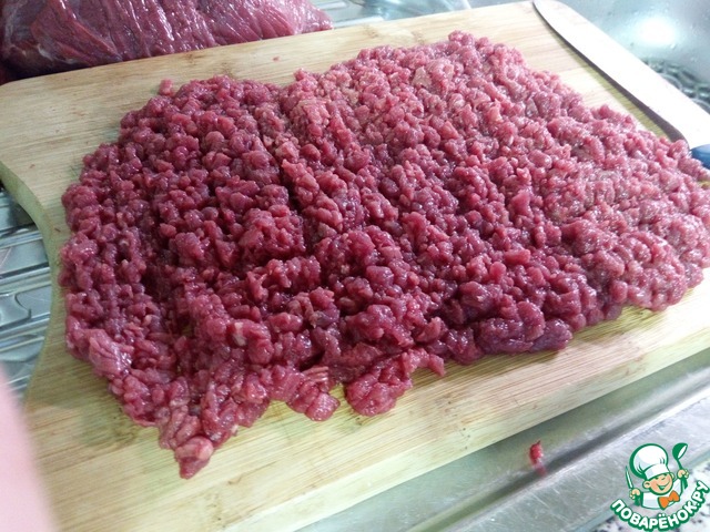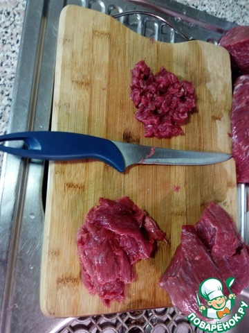 Начнем с мяса. Кусок мякоти зачищаем, удаляем все пленочки и жилки. Кто-то любит для удобства подморозить мясо, но я считаю, что при заморозке говядина может потерять свое сочное очарование.