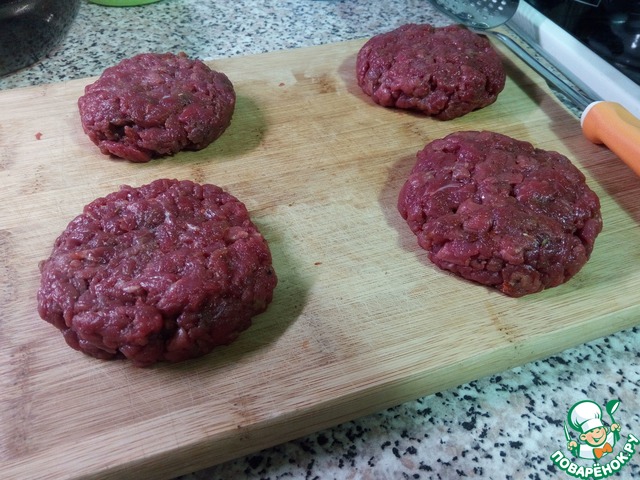 Сначала режем кусок ломтиками, ломтики – соломкой, соломку – мелкими кубиками. Нарезанное мясо рубим ножом в течение нескольких минут, время от времени перемешивая. Солим, посыпаем специями, перемешиваем уже руками и немного отбиваем, т. е. сильно ударяем фарш о доску. В результате фарш станет вязким и эластичным, и бифштекс при обжаривании не развалится и не потеряет форму.