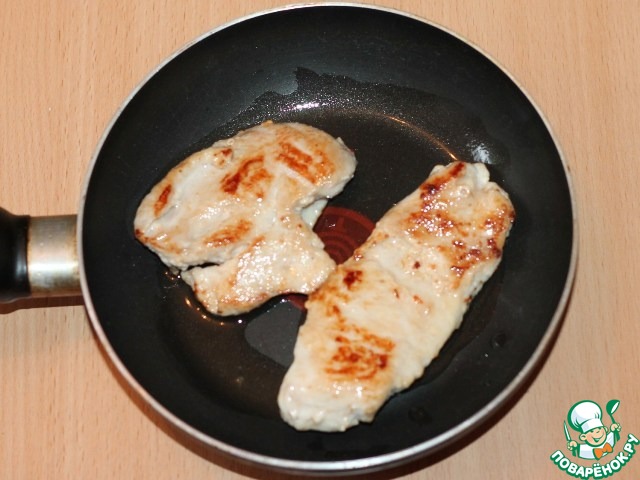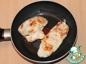 2. По истечении этого времени, обжариваем мясо на хорошо раскаленной, смазанной растительным маслом сковороде, с каждой стороны.