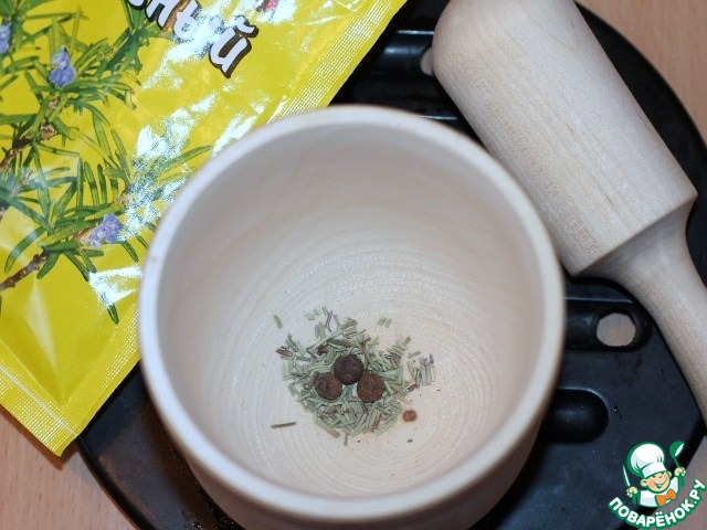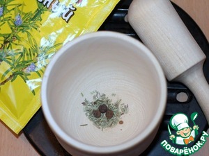 4. Измельчаете розмарин и душистый перец в ступке и добавляете в сотейник к вишне.
