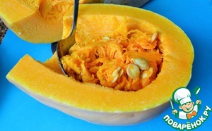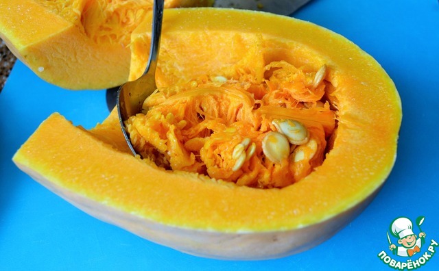 Тыкву вымыть, вычистить от семенной массы, нарезать крупными кусками.