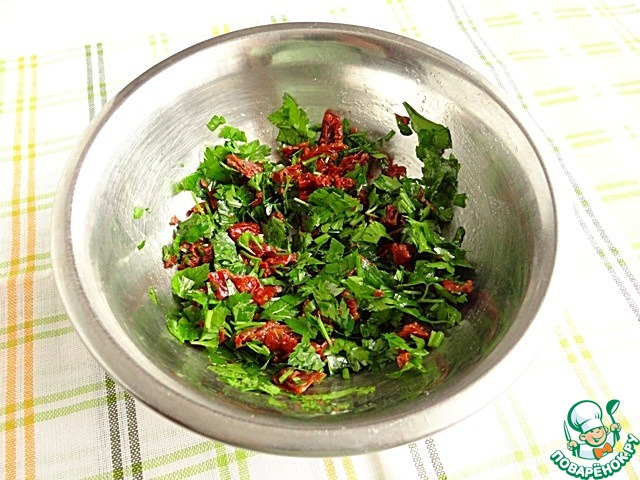 Нарезанную петрушку смешиваю с вялеными томатами.