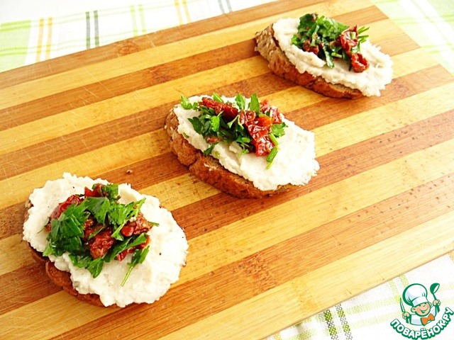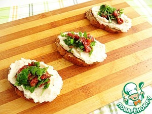 На фасолевое пюре выкладываю петрушку с вялеными томатами.