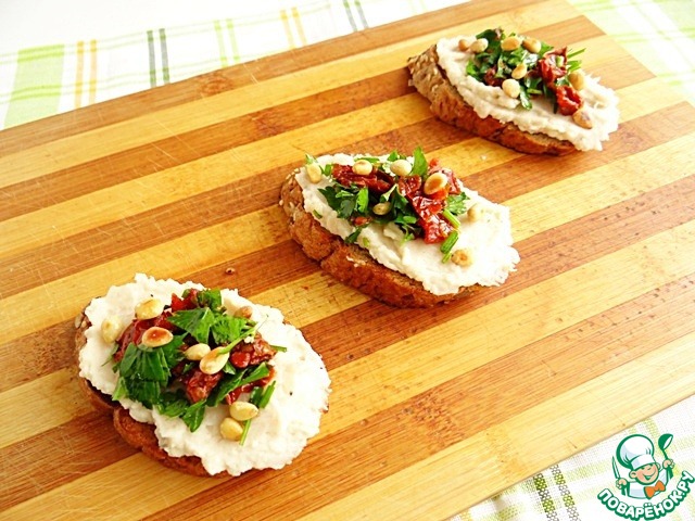 Брускетта - это классическая итальянская закуска, представляющая собой ломтик подсушенного или обжаренного хлеба, натёртого маслом и чесноком, а также начинки. Закуска имеет пикантный вкус и потрясающий аромат. Такое блюдо обычно подается до основного приёма пищи. Предлагаю приготовить брускетту с фасолевым пюре, вялеными томатами и петрушкой, посыпанными обжаренными кедровыми орешками. С помощью посуды Zepter Вы с легкостью сможете приготовить блюда, максимально сохраняя полезные вещества продуктов.