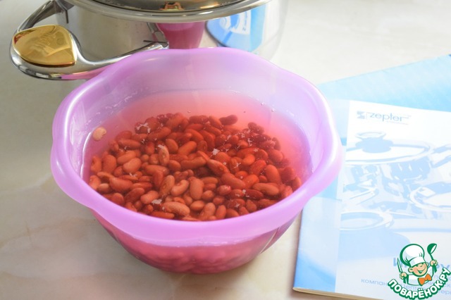 Фасоль на ночь (или на 4-5 часов) залить водой.