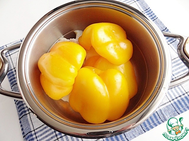 Перцы мою, разрезаю пополам, удаляю семена и выкладываю в сотейник.
