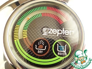 Сотейник закрываю крышкой и кладу на холодную плиту, включаю на самый маленький огонь (у моей электроплиты на переключателе 4 деления, поэтому я включаю на единицу). Даю стрелке термоконтроллера дойти до середины зеленого поля, затем отключаю плиту. Оставляю сотейник на плите примерно на 5 минут.