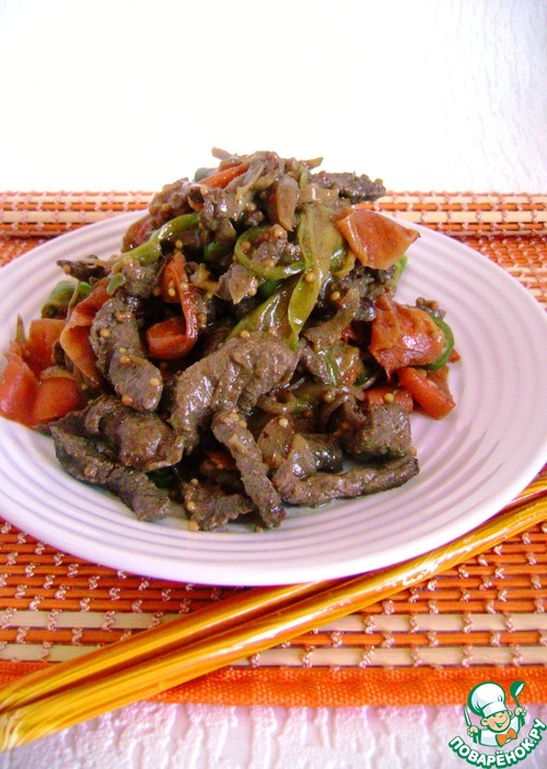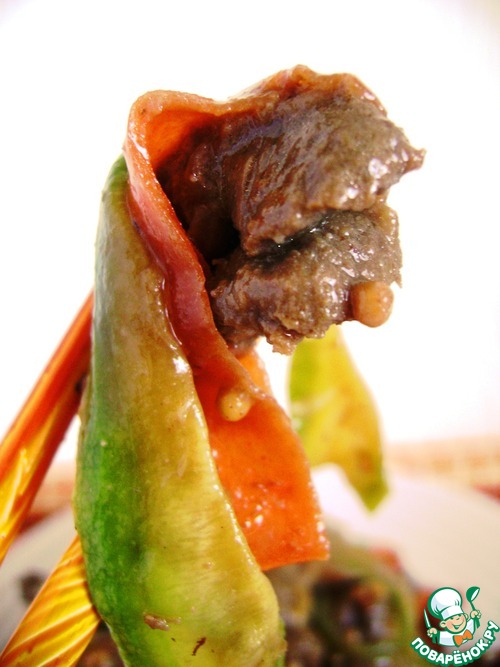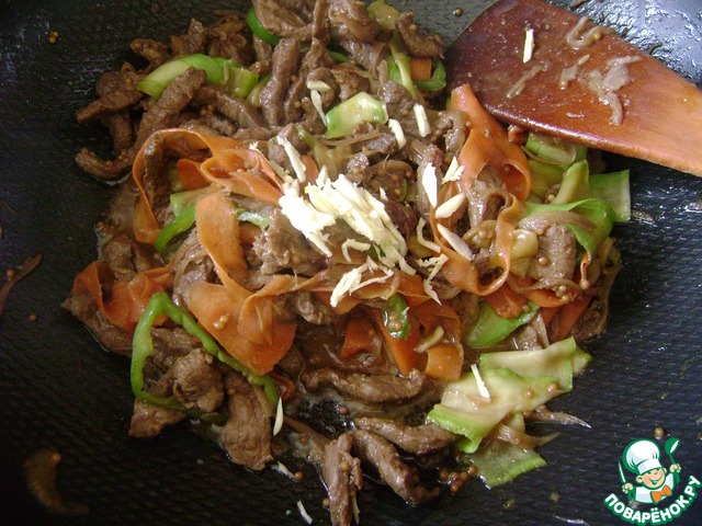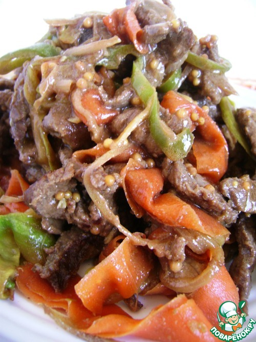 Рецепт «Ароматная острая говядина с овощными лентами»: