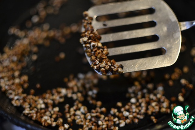 • Готовим попкорн-смазываем очень тонким слоем масла толстостенную сковородку, нагреваем. Обжариваем гречку, постоянно помешивая до тех пор, пока зерна не начнут лопаться. Когда приблизительно 2/3 зерен полопалось- можно выключать огонь.