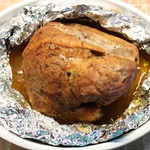 7. За 15 минут до окончания достаньте буженину, разорвите фольгу и полейте образовавшимся соком мясо