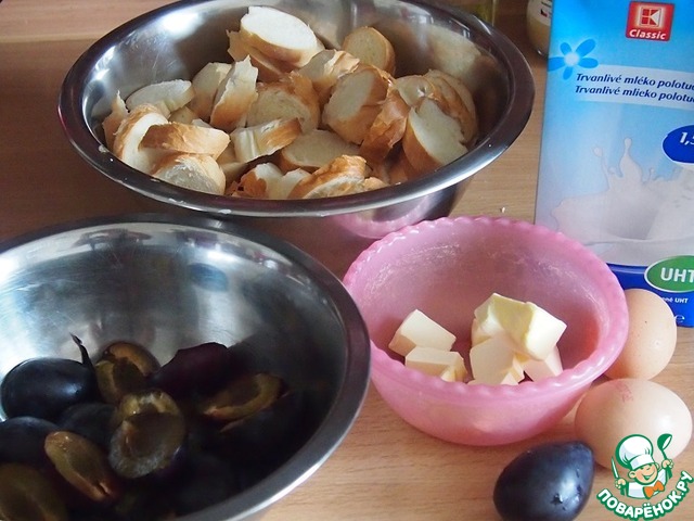 Ингредиенты для «Хлебный пудинг со сливами»: