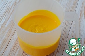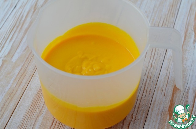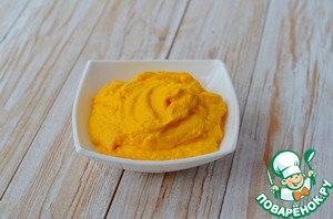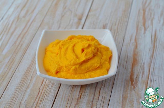 Густое тыквенное пюре смешать с соком апельсина и рикоттой.