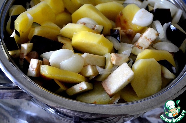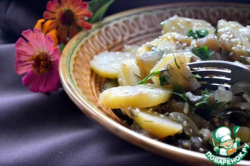 Рецепт «Теплый салат с картофелем и баклажанами»:
