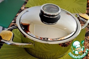 Ждем, когда стрелка термоконтроллера достигнет середины. Это значит, что внутри кастрюли - уже максимальная, нужная нам температура.