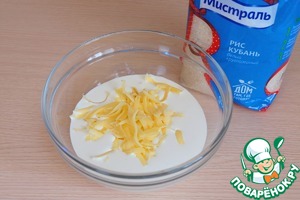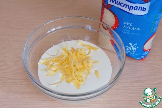 В миску добавить сливки, соль по вкусу, натертый на терке сыр.