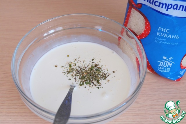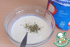 - Пряности (Смесь пряных трав (укроп, петрушка, базилик) 0,5 ч. ложки для рыбного фарша, 0,5 ч. ложки для сливочно-сырного соуса) — 1 ч. л.