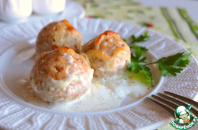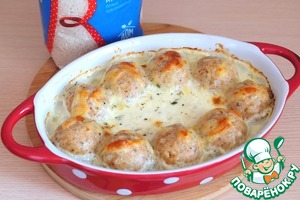 Приготовленную смесь добавить в форму с тефтелями. Форму отправить в духовой шкаф. Запекать до полной готовности блюда, а это произойдет приблизительно через 10-15 мин. В конце запекания включить гриль для образования красивой румяной корочки на поверхности тефтелей.