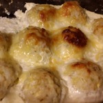 На дно формы для запекания добавить необходимое количество растительного масла, выложить тефтели и отправить форму с тефтелями в духовой шкаф для предварительного запекания. На тефтельках должна образоваться румяная корочка. Запекать приблизительно 10-15 мин. Затем форму с тефтелями достать и приступить к приготовлению сливочного соуса. Вот так будут выглядеть запеченные тефтельки.