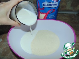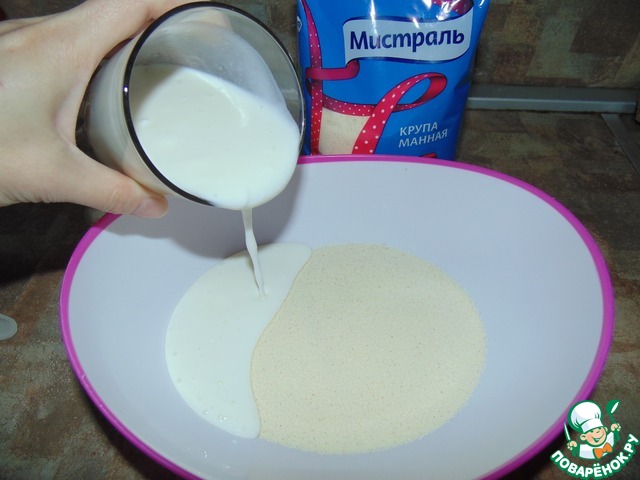 Залить манку стаканом кефира и оставить на 30-40 минут.