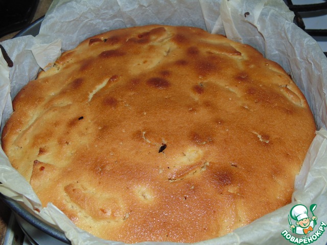 Вкусный домашний пирог с яблоками и шоколадными каплями.