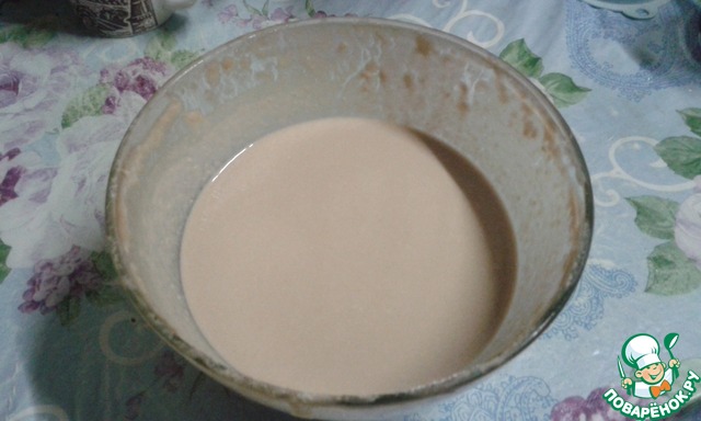 • Приготовить тесто. Кефир предварительно разогреть (только чтобы он не был очень горячим) и перелить в глубокую тарелку. Добавить яйца, соль, сахар, какао-порошок, ванильный сахар, муку и тщательно взбить венчиком, чтобы не было комочков.