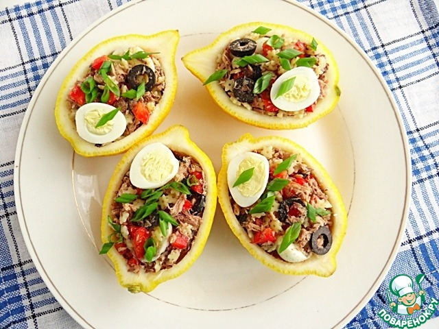 Ингредиенты для «Рыбный салат в лимонных чашках»: