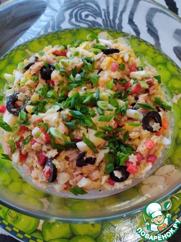 Посыпаю салат нарезанным зеленым луком. Рыбный салат в лимонных чашках готов! Приятного Вам аппетита!